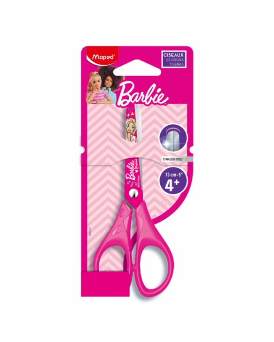 Paire de ciseaux Maped x Barbie, aux couleurs de la célèbre poupée. Forme ergonomique et bout rond.