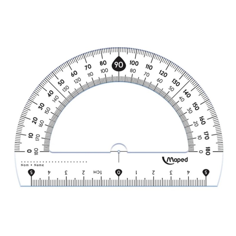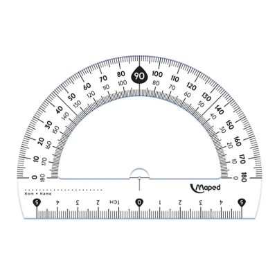 Le rapporteur Essentials de Maped se compose d'un demi-cercle de 180° et a en plus une échelle droite de 12 cm de longueur. L'impression graduée avec une couleur résistante aux UV garantit une durabilité optimale. Pour personnaliser le rapporteur, il a été laissé de la place pour écrire le nom !
