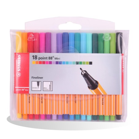 Stylo-feutre à pointe gaînée de métal pour une écriture fine et précise, tracé de 0,4 mm Idéal pour les tracés de précision, les graphiques, la cartographie et les prises de notes tout en couleurs Le système de tampon permet une grande longévité de l'encre : jusqu'à 100 m d'écriture Bonne glisse sur le papier assurée par la grande qualité de ses fibres de feutre 18 couleurs assorties