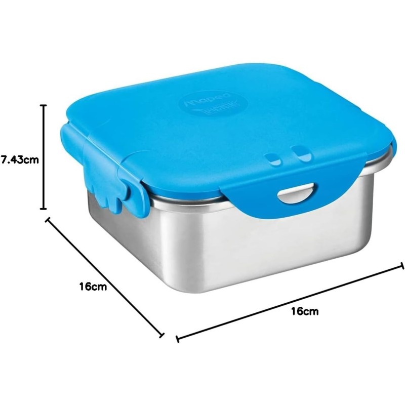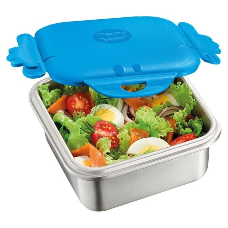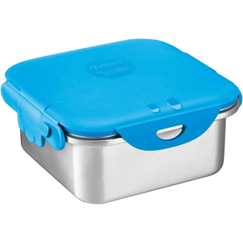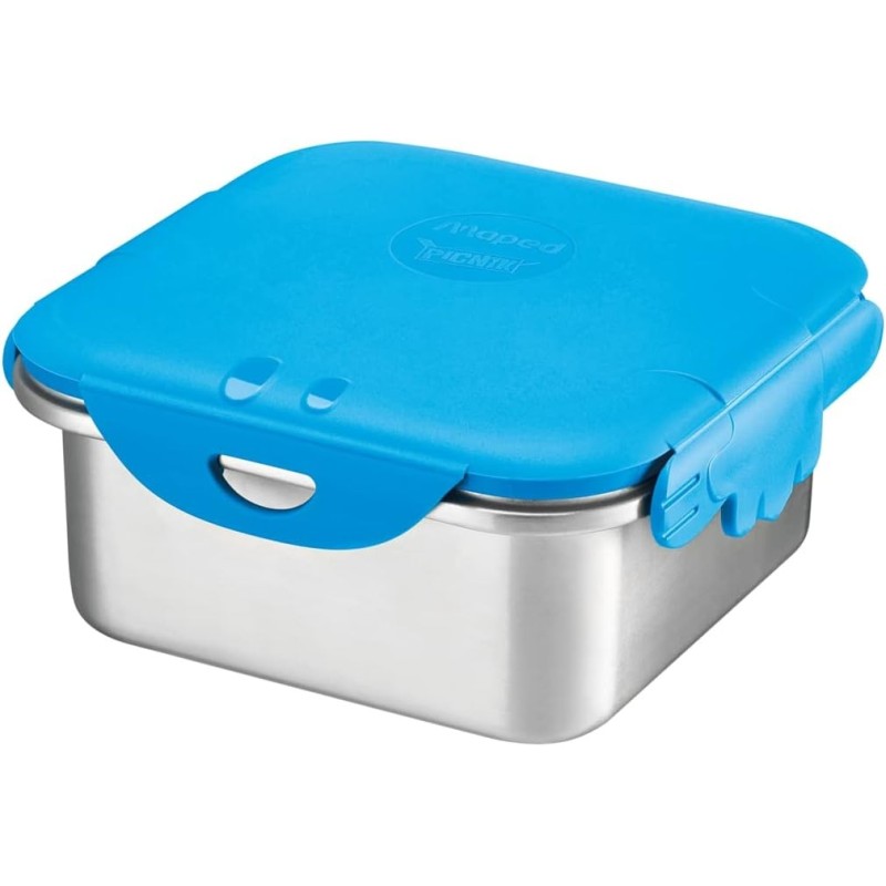 La lunch box Maped en acier inoxydable de 1 litre, avec un couvercle bleu est conçue spécialement pour les enfants. Légère, durable, saine et écologique, elle offre une fermeture hermétique grâce à un joint en silicone, parfaite pour transporter un plat principal avec sauce. Compacte et résistante au lave-vaisselle, elle n’est pas compatible micro-ondes.