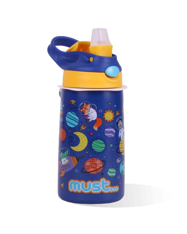 Le bracelet de la société Must est fabriqué dans un matériau en acier inoxydable qui ne se casse pas et ne rouille pas avec le temps. De part sa matière, il n'est pas affecté par les boissons acides comme les jus de fruits contrairement à l'aluminium. De plus, il fait également chaud, ce qui a la propriété de maintenir la température du liquide constante pendant longtemps, comme par exemple l'été à la plage. Il dispose même d'une paille pour un débit facile et contrôlé lorsque l'enfant boit.
