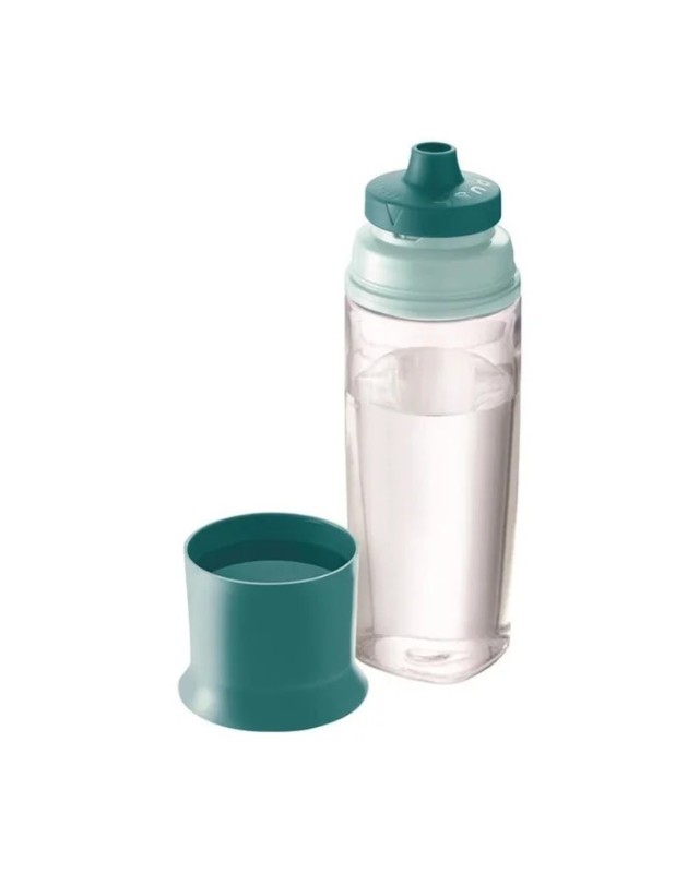 Gourde adulte 500 ml étanche, ouverture facile au pouce, bec verseur protégé et amovible, corps transparent, plastique sans BPA, compatible lave-vaisselle, idéale pour eau et jus de fruits.