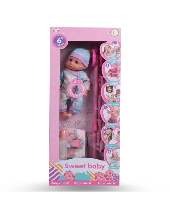POUPÉE + POUSSETE + ACCESSOIRES AVEC 6 FONCTIONS