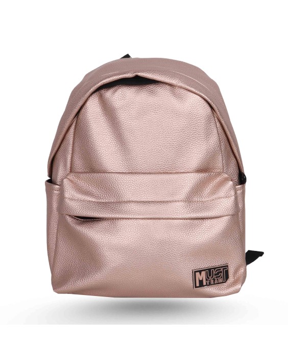 Sac à dos Must Team Matt Mini Gold en cuir PU mat, compact et pratique, avec poches avant, poche intérieure doublée, dos rembourré, bretelles renforcées, sangles réfléchissantes et poignée confortable.
