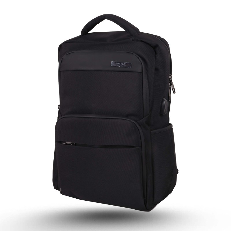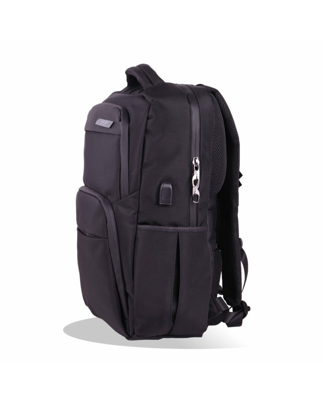 Le sac possède plusieurs compartiments pour organiser vos affaires, notamment un compartiment rembourré pour ordinateur portable (Le rembourrage présente une structure alvéolée, suggérant une protection contre les chocs), un compartiment principal spacieux et des poches avant pour les petits objets , ainsi qu'un port USB situé sur l'une des bretelles, suggérant la possibilité de recharger son téléphone directement depuis le sac. Il dispose également d'une poignée supérieure et de bretelles rembourrées réglables pour un transport confortable.