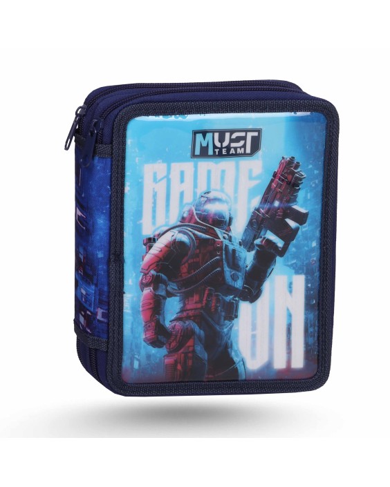 Trousse scolaire double Must Team, au design dynamique, idéale pour organiser et transporter toutes vos fournitures scolaires avec style.