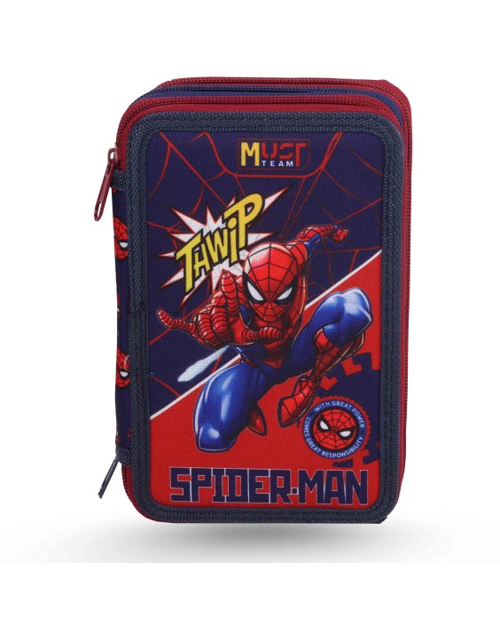 Trousse triple compartiment, complète avec tout le nécessaire pour bien commencer l’école.